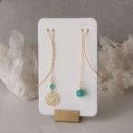 ひまわりのような透かしパーツと天然石を組み合わせたアシンメトリーなピアス・イヤリングです。