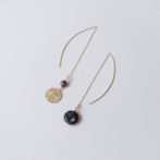 ひまわりのような透かしパーツと天然石を組み合わせたアシンメトリーなピアス・イヤリングです。
