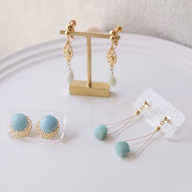 【ピアス/イヤリング】Cabochon(Round)~ Amazonite~