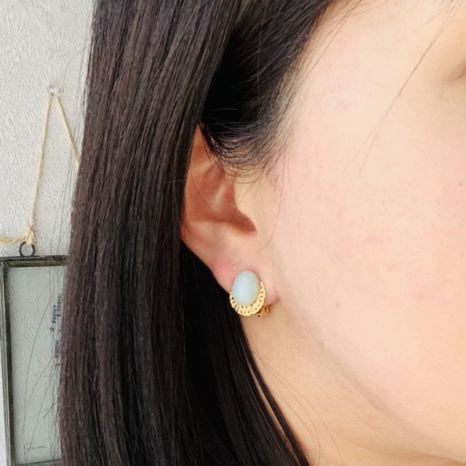 【ピアス/イヤリング】mini Cabochon(Oval)~ Amazonite~