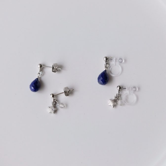 標準のピアスは真鍮メッキ製、イヤリングはノンホールピアス(樹脂イヤリング)を使用しています。