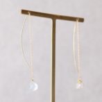 マロン型の天然石とオーラ加工のさざれクォーツを使い、線香花火”Sparkler”を模したアシンメトリーなアメリカンピアスです。