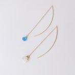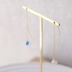 マロン型の天然石とオーラ加工のさざれクォーツを使い、線香花火”Sparkler”を模したアシンメトリーなアメリカンピアスです。